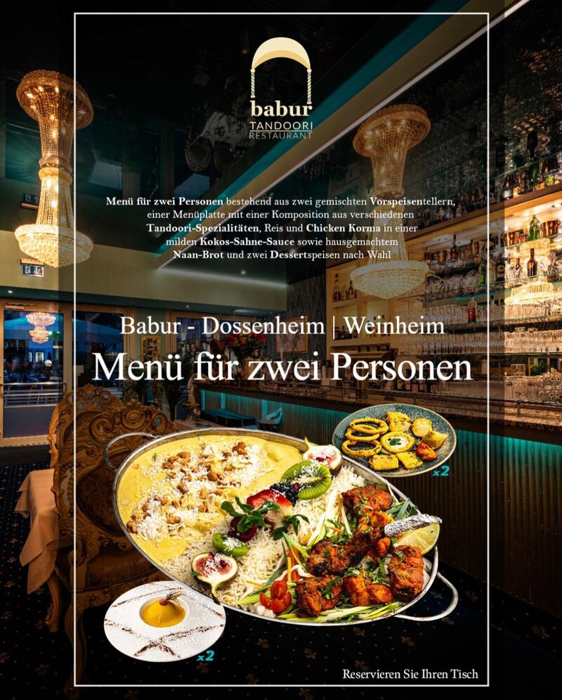 Auch in Dossenheim können Sie das einzigartige Geschmackserlebnis des Babur genießen. Die Filiale in Dossenheim bietet die gleiche Qualität und Vielfalt wie das Babur in Weinheim. Tauchen Sie ein in das einladende Ambiente, lassen Sie sich von den exotischen Aromen verwöhnen und erleben Sie die herzliche Gastfreundschaft, für die das Babur bekannt ist